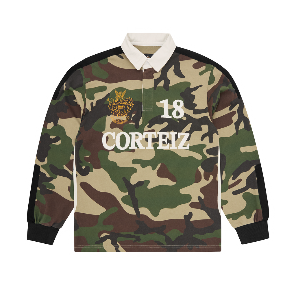 Home MAGLIONE Corteiz Logo HMP RUGBY Woodland Camo Maglione